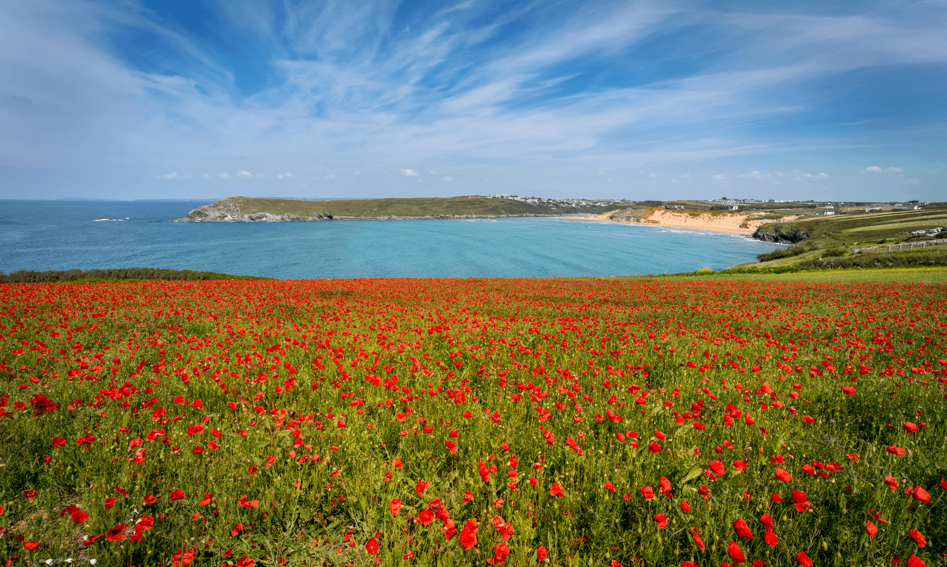 Beyond gardens planted by hands, Cornwall’s coastline is a botanical show in its own right. Each May and June, the wildflower meadows around West Pentire Headland burst into a tapestry of red poppies and yellow corn marigolds. Against the backdrop of the Atlantic Ocean, these blooms create some of Cornwall’s most iconic photographic scenes.